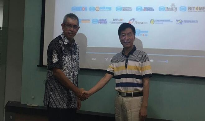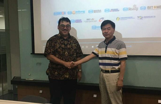 铁科公司董事长苏笮斌先生与印尼科技部首席专家握手合影
