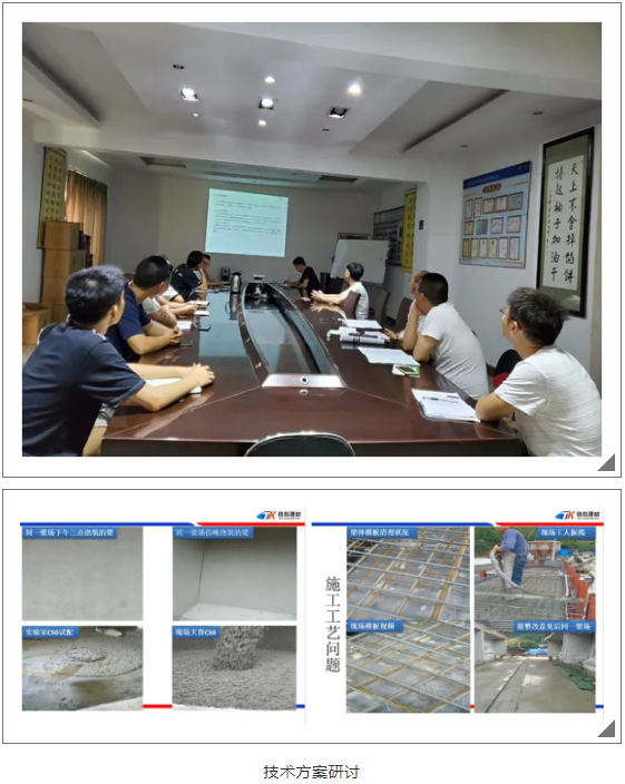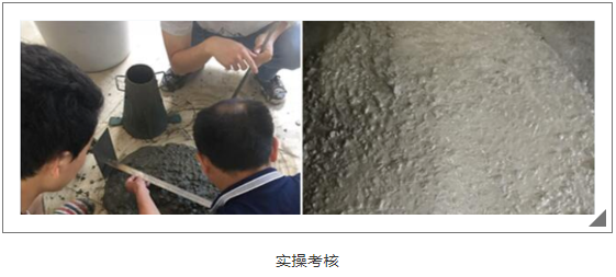 实操考核中,从材料的准备分析、到配合比设计、成本的控制、最终的实验效果……技术员们在比试中互相学习,在切磋中相互提高。炎热的天气也阻挡不了技术员们的学习热情,汗水一层层的浸透了蓝色工装留下花纹般的盐渍,记录着他们求知的精神风貌。