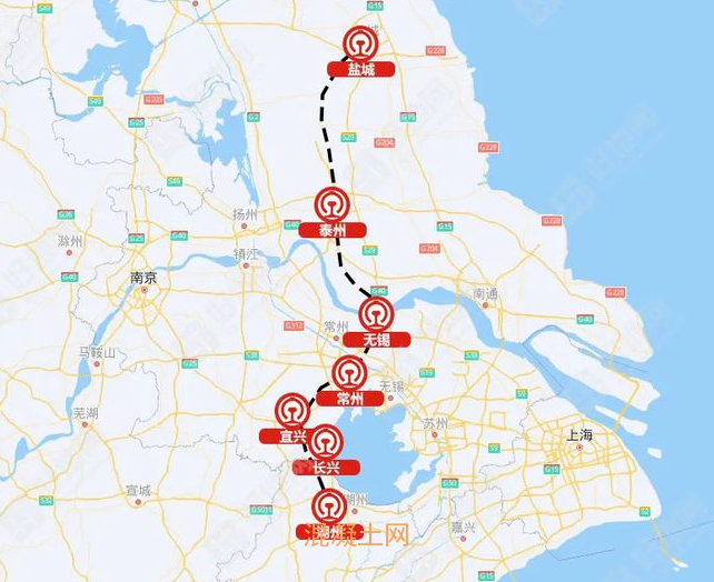 盐城经泰州无锡常州宜兴至湖州铁路江苏段